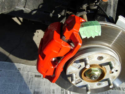 オキツモの耐熱塗料を購入し、ブレーキキャリパーを塗装してみました。
