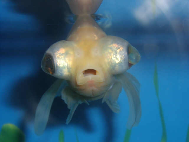 針でつついて潰しちゃった方が良いのかしら?しかし、この金魚、コレでどう見えているのだろうか?