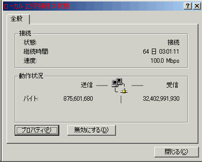 windowsのセキュリティアップデートとかもろもろ貯まってきたので、パソコン64日間点けっ放し、32.4GB受信で泣く泣く再起動を・・・
