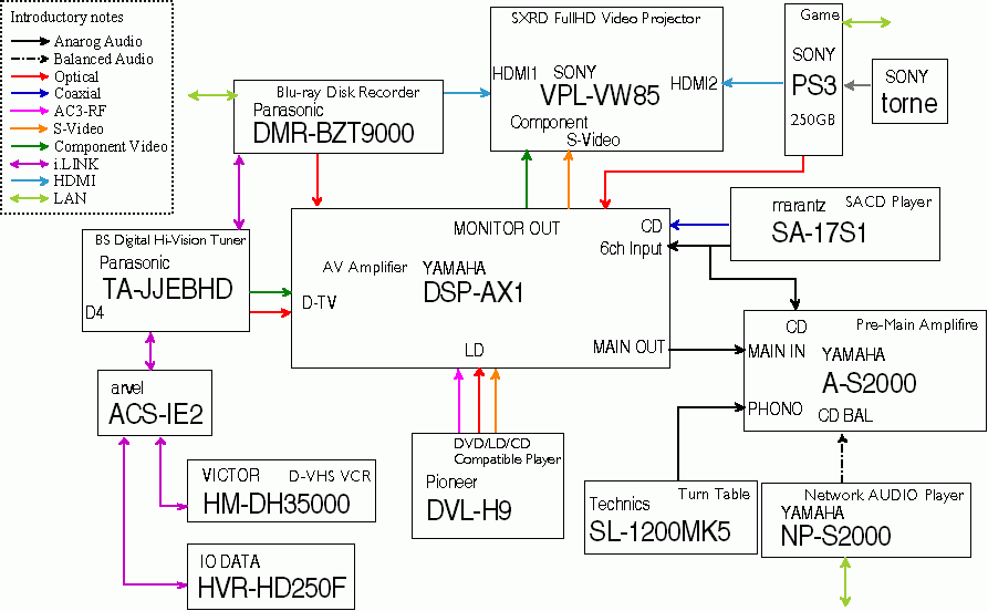 AVアンプを替えてHDMI対応としたとしても、BZT9000の映像と音声を分離伝送するとなると、プロジェクターにHDMIケーブルを2本持って行かないといけない事になるようですな。