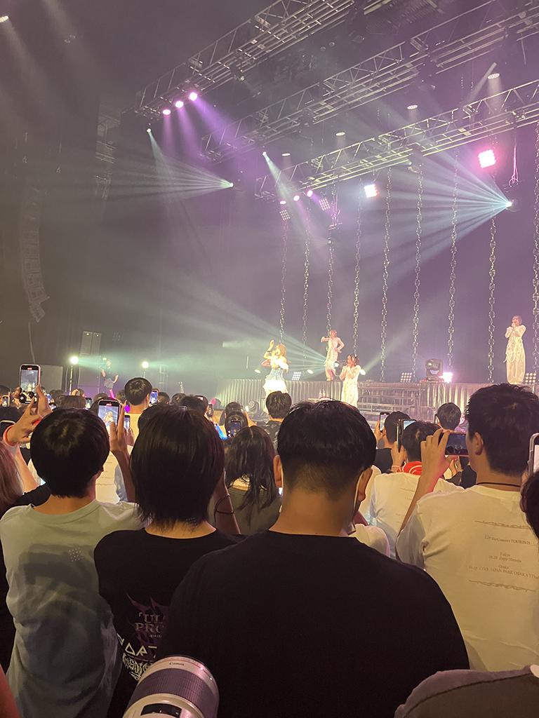 スマホでゲーム配信らしきものを見ていたり、後ろ向いたり上向いたり。ほとんどステージを見ない。