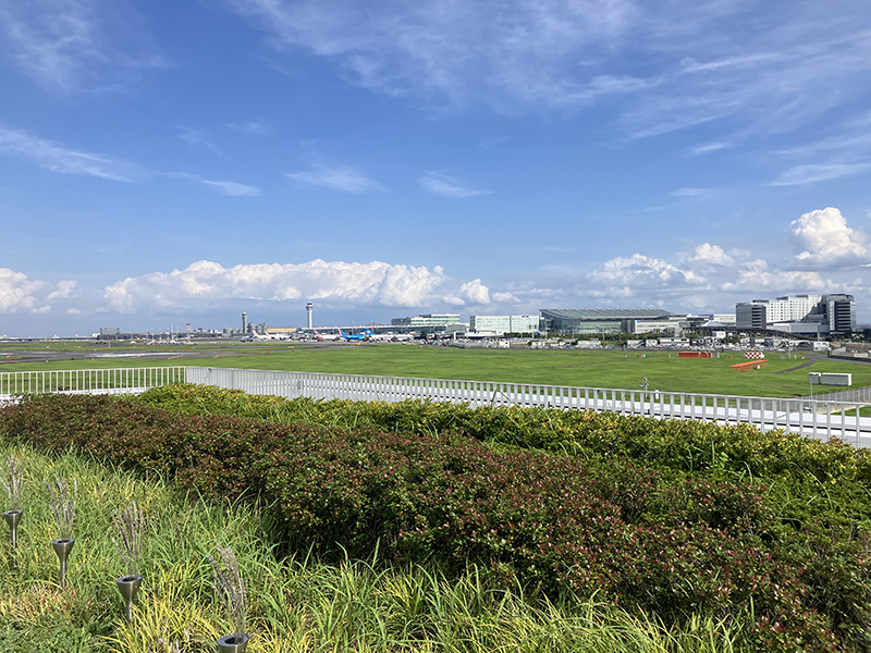 左側の建物の屋上に展望台(足湯付き)があり、羽田空港が一望できました。